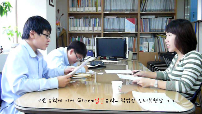 Á÷¾÷ÀÎ ÀÎÅͺ並 À§ÇØ ¸ñµ¿ÁßÇб³¿¡¼­ 3¸íÀÇ ÇлýÀÌ GreenÀϺ»À¯Çп¡ Âü°¡½ÅûÀ» Çß´ä´Ï´Ù.