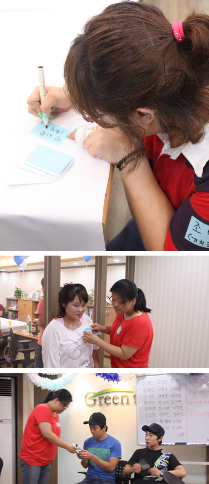 »õ·Î¿î Âü¼®ÀÚ°¡ µµÂøÇÒ ¶§¸¶´Ù Á¶¹éÁø¾¾°¡ À̸§Ç¥¸¦ ÀÛ¼ºÇØ Á̴ּä´Ï´Ù.