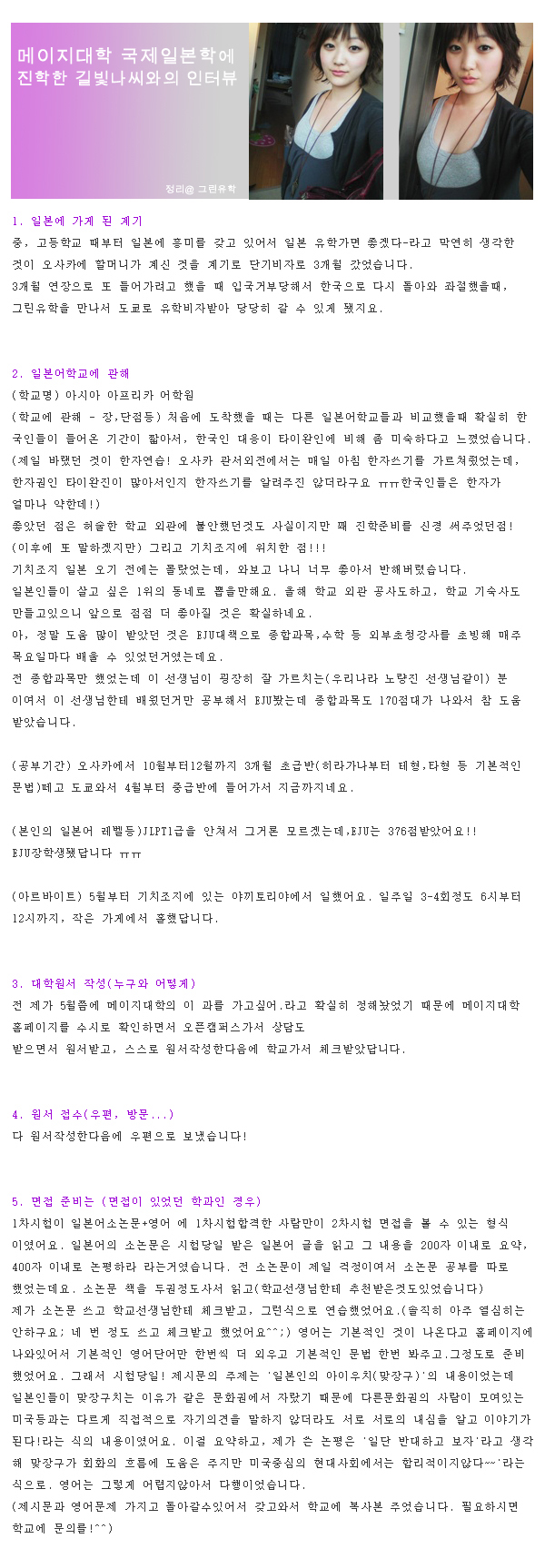 ±×¸°Çлý°úÀÇ ÀÎÅͺä > ¸ÞÀÌÁö´ëÇÐ ±¹Á¦ÀϺ»Çаú¿¡ ÁøÇÐÇÑ ±æºû³ª¾¾¿ÍÀÇ ÀÎÅͺä -