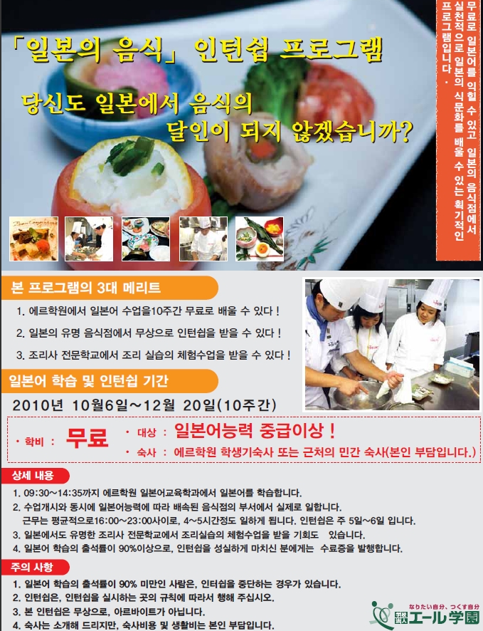 ÀϺ»À¯ÇÐ¼Ò½Ä > ÀϺ»¿¡¼ ÀÎÅϽ±À» °æÇèÇØº¸ÀÚ! ¿¡¸£ÀϺ»¾îÇб³ ¿Ü½Ä¾÷°è ÀÎÅϽ± (¹«±Þ)