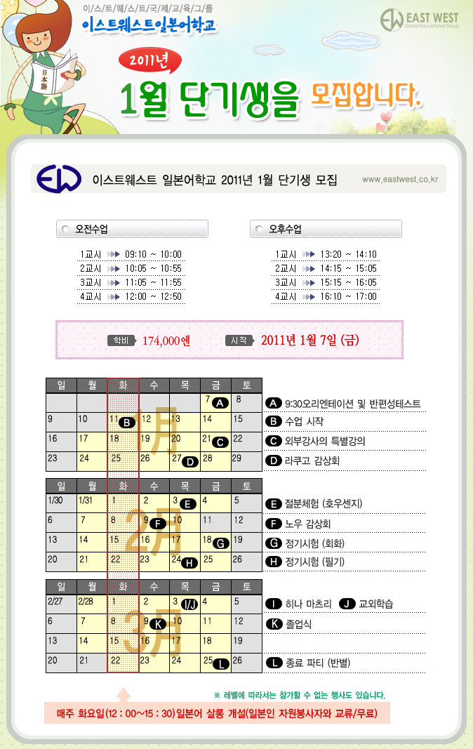ÀϺ»À¯ÇÐ¼Ò½Ä > À̽ºÆ®¿þ½ºÆ®ÀϺ»¾îÇб³ 2011³â 1¿ù ´Ü±â»ý ¸ðÁý