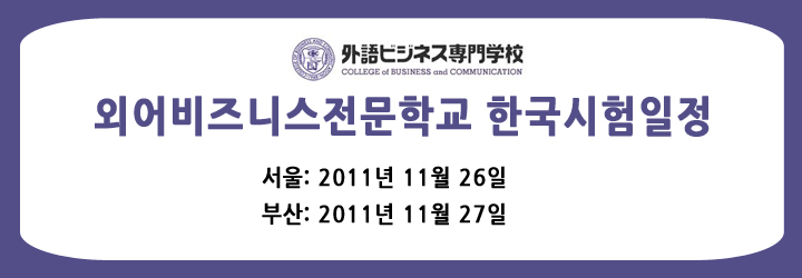 ÀϺ»À¯ÇÐ¼Ò½Ä > ¿Ü¾îºñÁî´Ï½º Àü¹®Çб³ Çѱ¹½ÃÇèÀÏÁ¤(¼­¿ï/ºÎ»ê¿¡¼­ ½Ç½Ã)