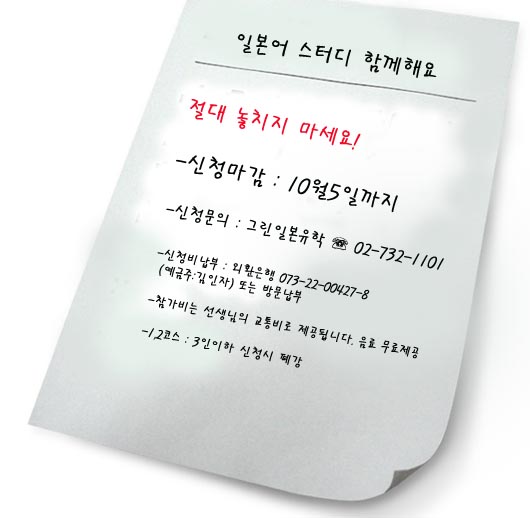[10¿ù6ÀÏ ¾Ë¸²]  10¿ù°³°­ ÀϺ»¾î½ºÅ͵ð 1,2´Ü°è ½ÅûÀ» 10¿ù6ÀϺηΠ¸¶°¨ÇÕ´Ï´Ù.