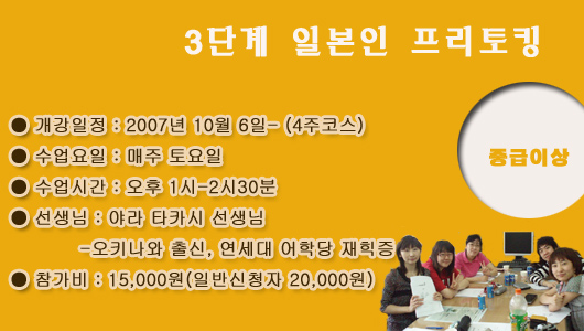 312 ½ºÅ͵ð 11¿ù ÀϺ»ÀÎ ÇÁ¸®ÅäÅ·(Áß±ÞÀÌ»ó) ½Åû¾È³» [6] ±×¸°ÀϺ»À¯ÇÐ 1735 2007-10-25