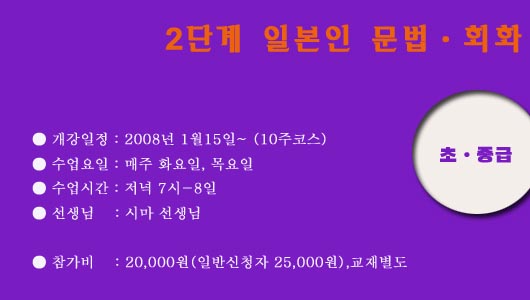 2008³â 1¿ù15ÀϺÎÅÍ ½ÃÀÛÇØ ¸ÅÁÖ È¿äÀÏ, ¸ñ¿äÀÏ ¼ö¾÷ÇÕ´Ï´Ù. (½Ã°£Àº ¿ÀÈÄ7½Ã~8½Ã)