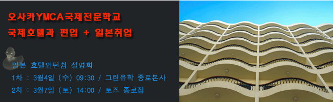 ¿À»çÄ«YMCA±¹Á¦Àü¹®Çб³ È£ÅÚÀÎÅϽ±ÇÁ·Î±×·¥ (ÀϺ» ¿À»çÄ«½Ã ÃÊÆ¯±ÞÈ£ÅÚ Çѱ¹ÀÎ Á¤Á÷¿ø ä¿ë)