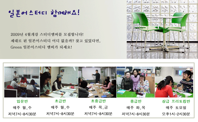 Green ÀϺ»¾î½ºÅ͵ð´Â Àü°Á ¿ø¾î¹Î¼±»ý´ÔÀÇ ¼ö¾÷ÀÔ´Ï´Ù!! ¿ÕÃÊÂ¥µµ µéÀ» ¼ö ÀÖ´Â Ãʱ޺ÎÅÍ, Áß±Þ, »ó±ÞÀÇ ÇÁ¸®ÅäÅ·°úÁ¤±îÁö ÀϺ»Àο¡°Ô ¼ö¾÷À» µè´Â ¿ø¾î¹Î¼±»ý´Ô°ú ÇÔ²² ÇÏ´Â ÀϺ»¾î¼ö¾÷ÀÔ´Ï´Ù!!