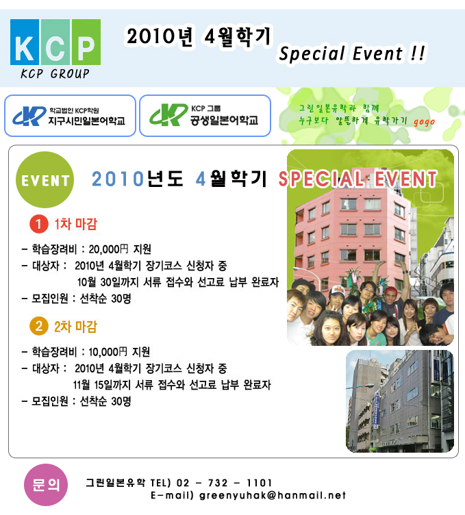 [KCPÀϺ»¾îÇб³]2010³â 4¿ùÇбâ»ýÀ» À§ÇÑ Æ¯º°ÇÑ À̺¥Æ® !!