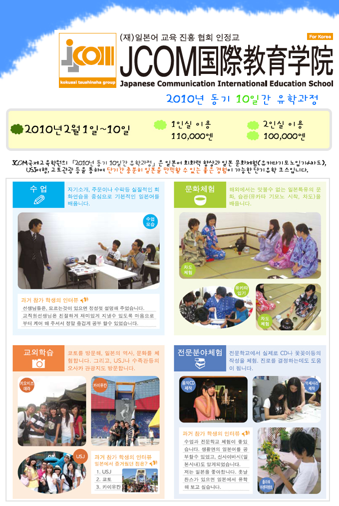 ÀϺ»À¯ÇÐ¼Ò½Ä > [JCOM±¹Á¦±³À°Çпø]2010³â µ¿±â 10Àϰ£ À¯ÇаúÁ¤