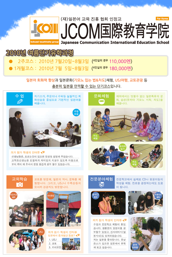 ÀϺ»À¯ÇÐ¼Ò½Ä > [JCOM±¹Á¦±³À°Çпø]2010³â 7¿ù~8¿ù ¿©¸§´Ü±âÄÚ½º